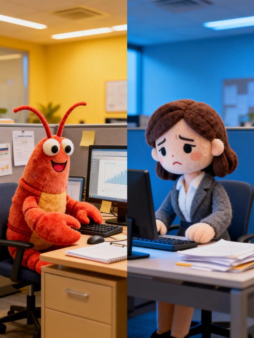 以前职场比较的是人与人之间的差异。现在,AI成了新的“基准线”。你不是在和同事竞争,你是在和“龙虾”比赛。而这场比赛,你从一开始就输了——因为人类永远不可能比AI更快、更准、更不知疲倦。